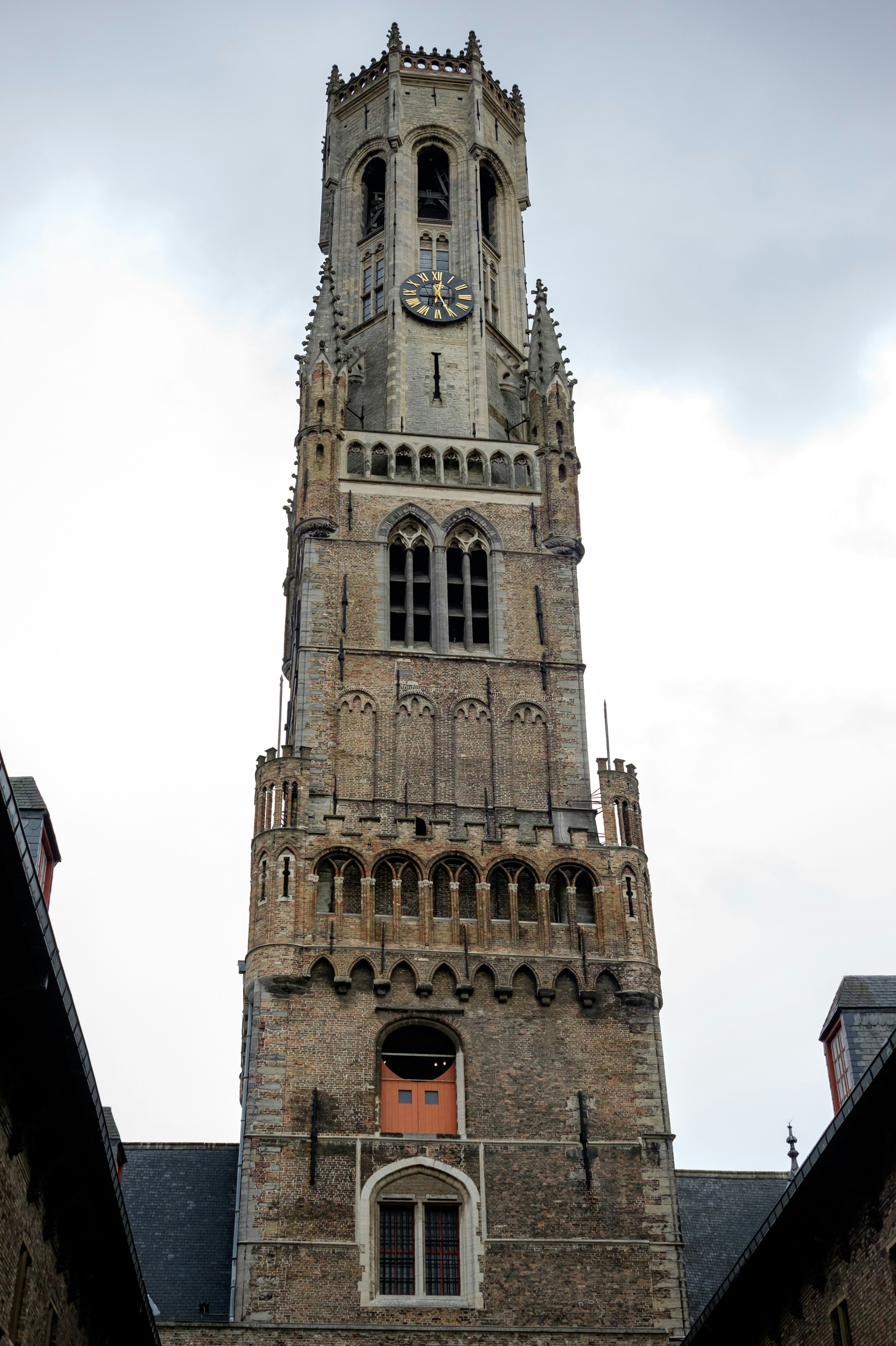 Подъём на колокольню — одно из самых популярных занятий у туристов. Внутри — узкая винтовая лестница примерно на 366 ступенек. Подъём местами довольно крутой, а разойтись на поворотах сложно, поэтому людям с выраженным страхом высоты, клаустрофобией или ограниченной подвижностью стоит взвесить свои силы. Однако те, кто поднимается наверх, получают награду в виде круговой панорамы черепичных крыш Брюгге, каналов и окрестных полей.