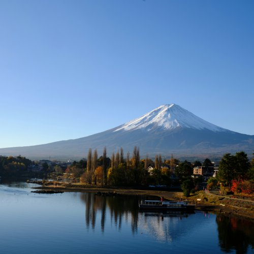 Ключевая причина — вид на гору Фудзи. При ясной погоде отражение вулкана в водах озера даёт живописные фото. Дополнительные активности: подъем на фуникулёре Kachi Kachi Ropeway, прогулки на каяках и лодках, посещение музея (например, Музей искусств Кавагучико), панорамные площадки и пикники у берега.