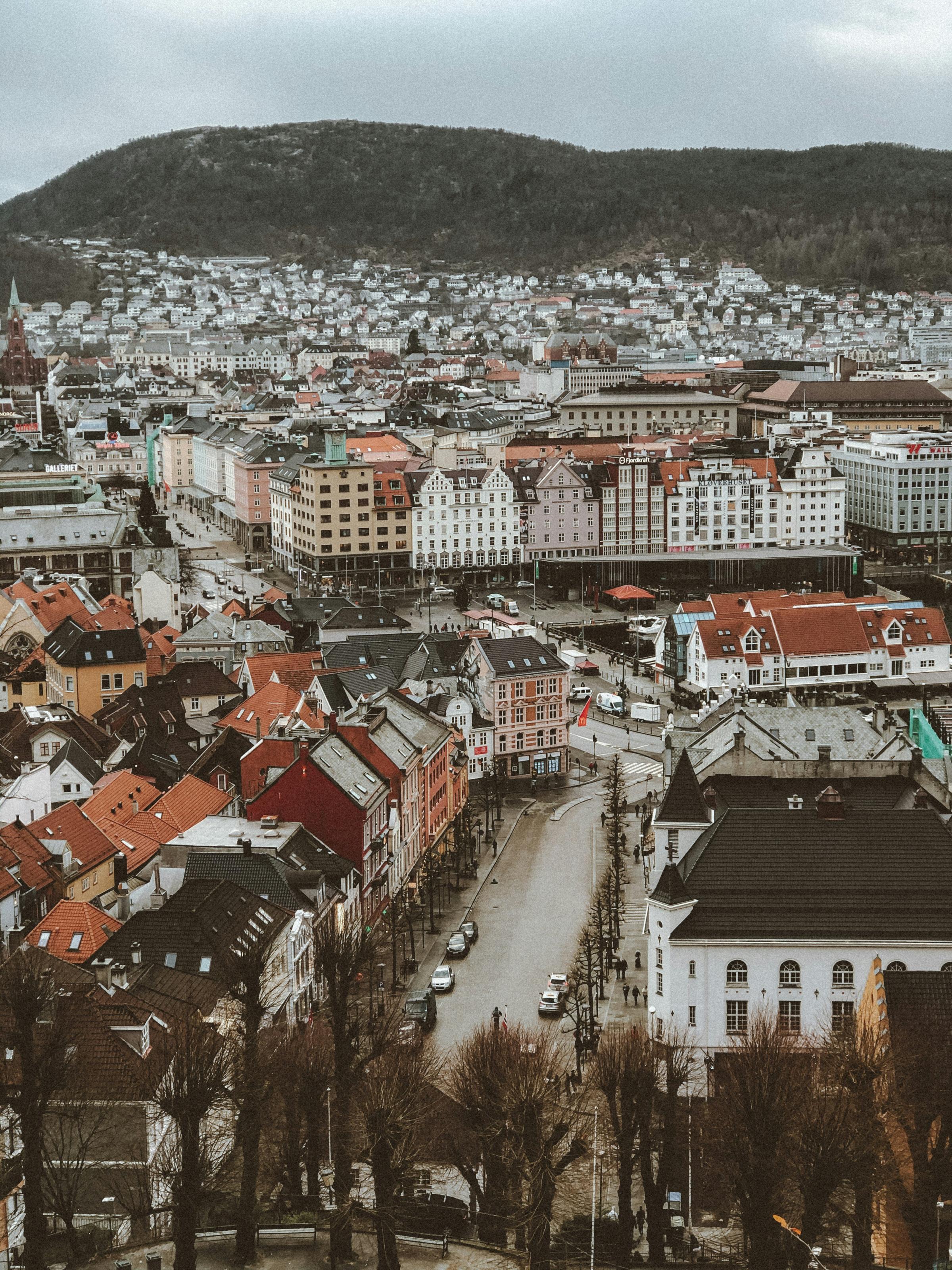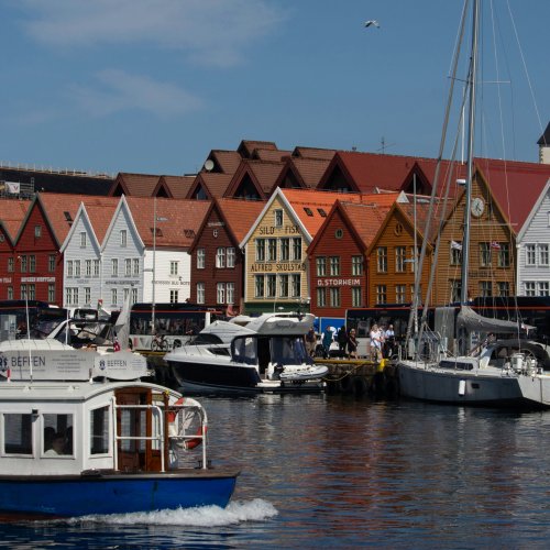 Главные точки: Брюгген — исторический квартал у причала с узкими улицами и деревянной застройкой; Рыбный рынок (Fisketorget) — отличное место попробовать свежие морепродукты; фуникулёр Флойбанен (Fløibanen) поднимает на вершину горы Флойен, откуда открывается панорама города и фьорда; аквариум Бергена (Bergen Aquarium) и несколько интересных музеев, включая Ханзейский музей.